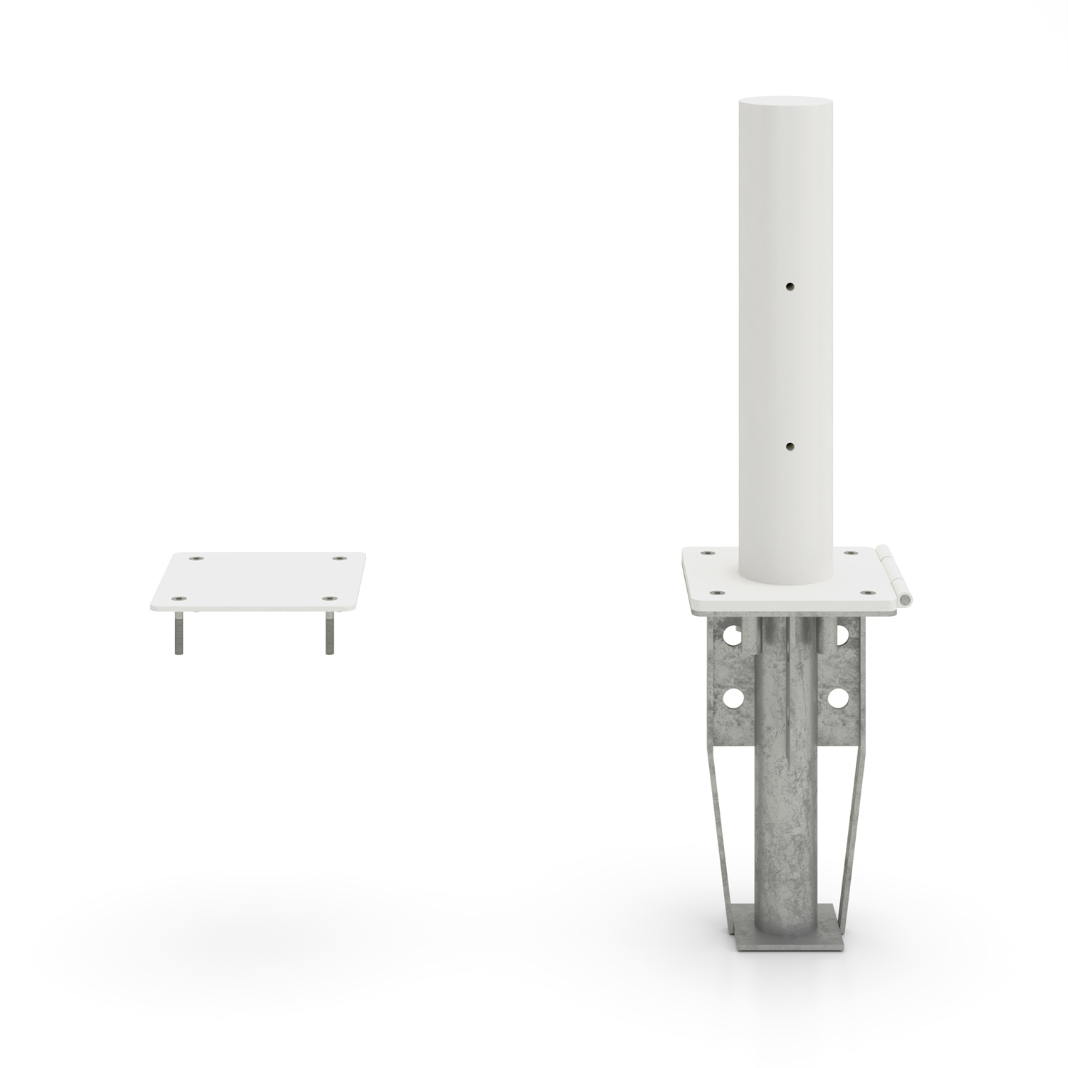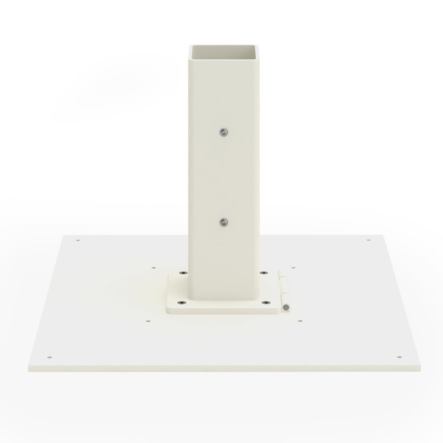 Base de superficie y fijación mediante taco y tornillo. Acabado galvanizado y lacado en polvo blanco.
