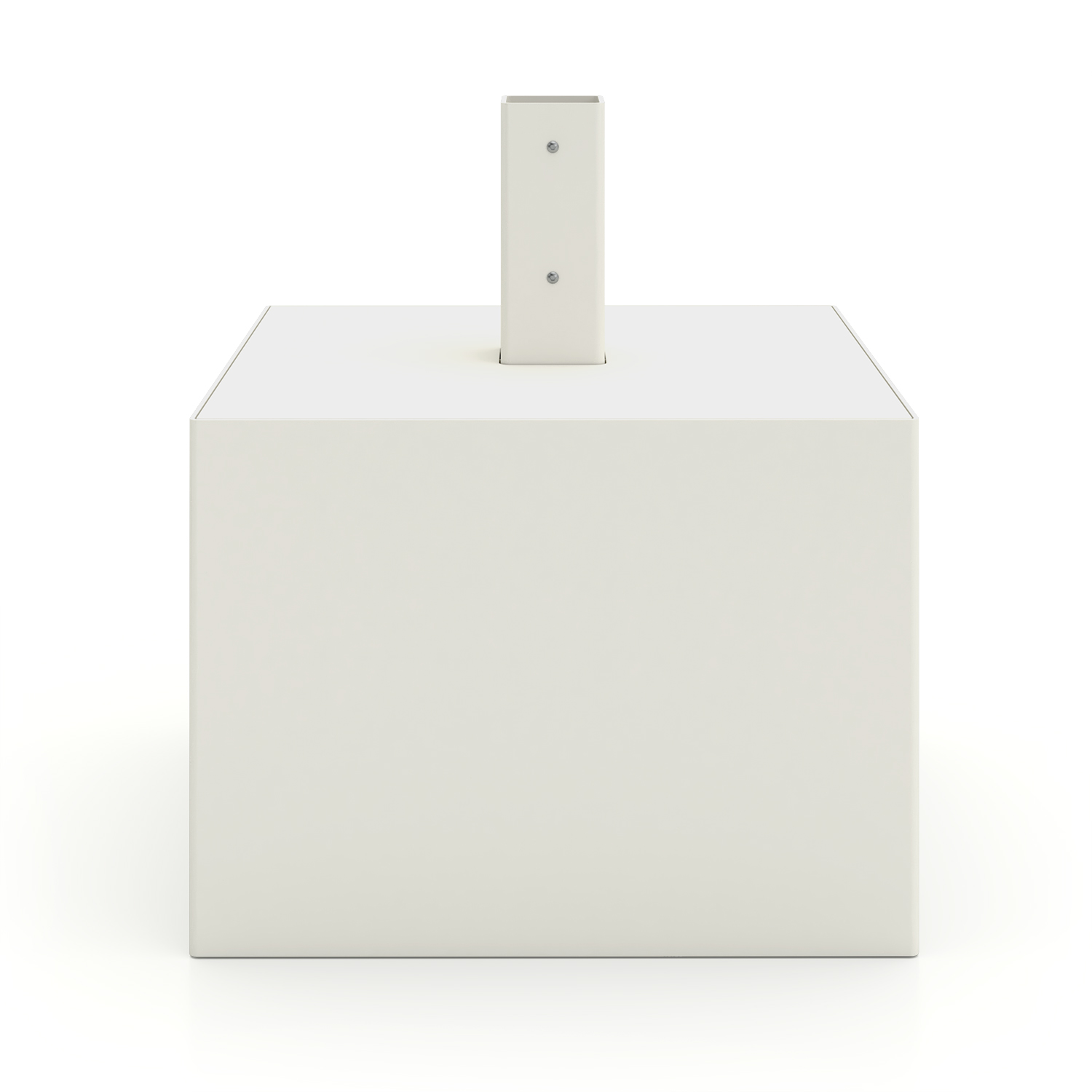 Base de superficie y peso de 155 kg. Acabado lacado en polvo blanco.
