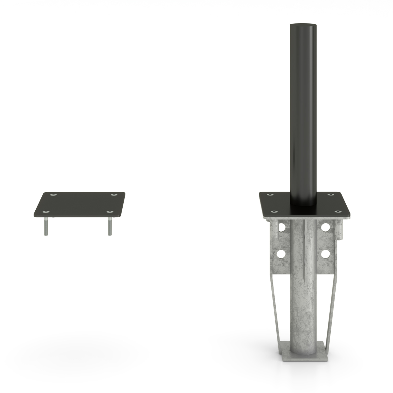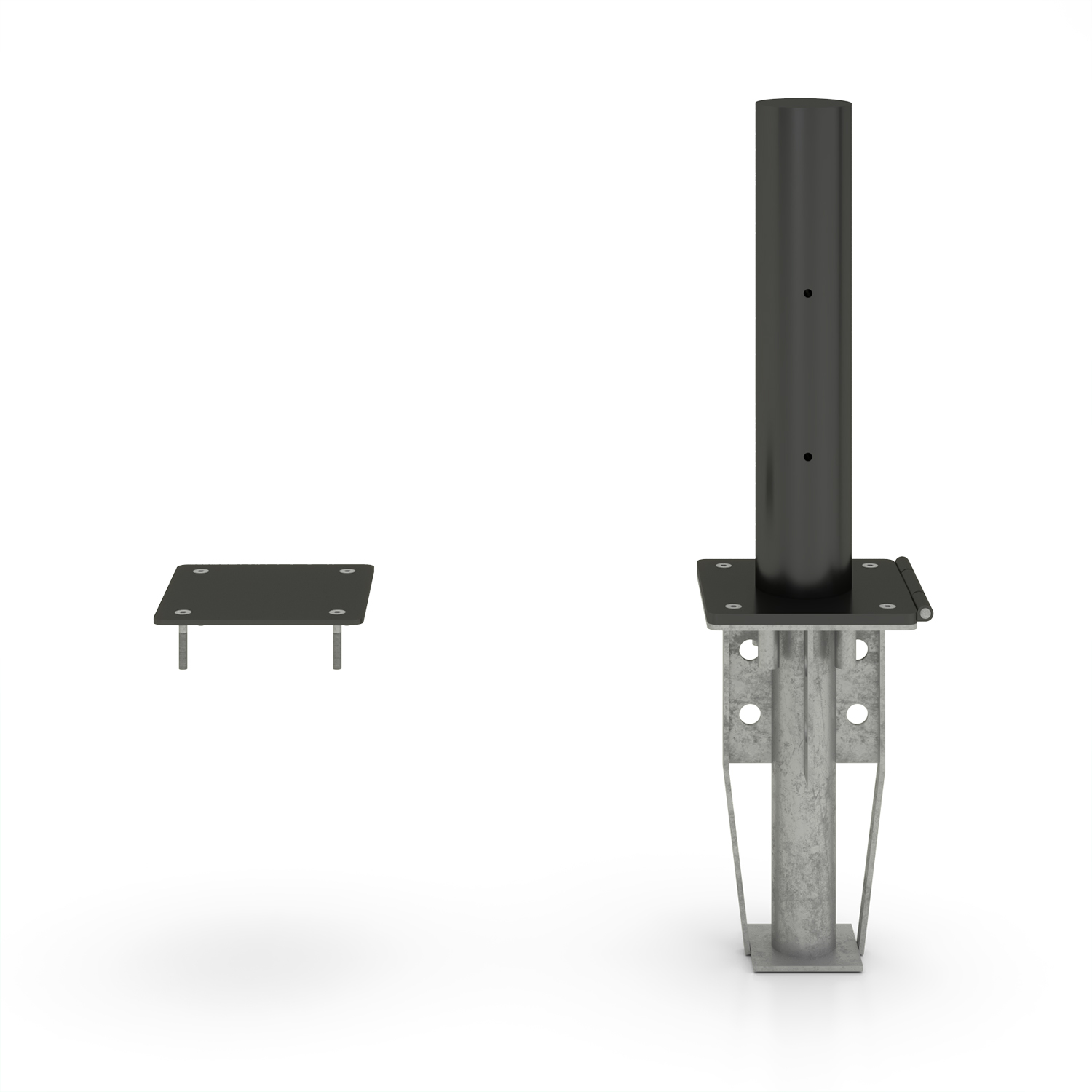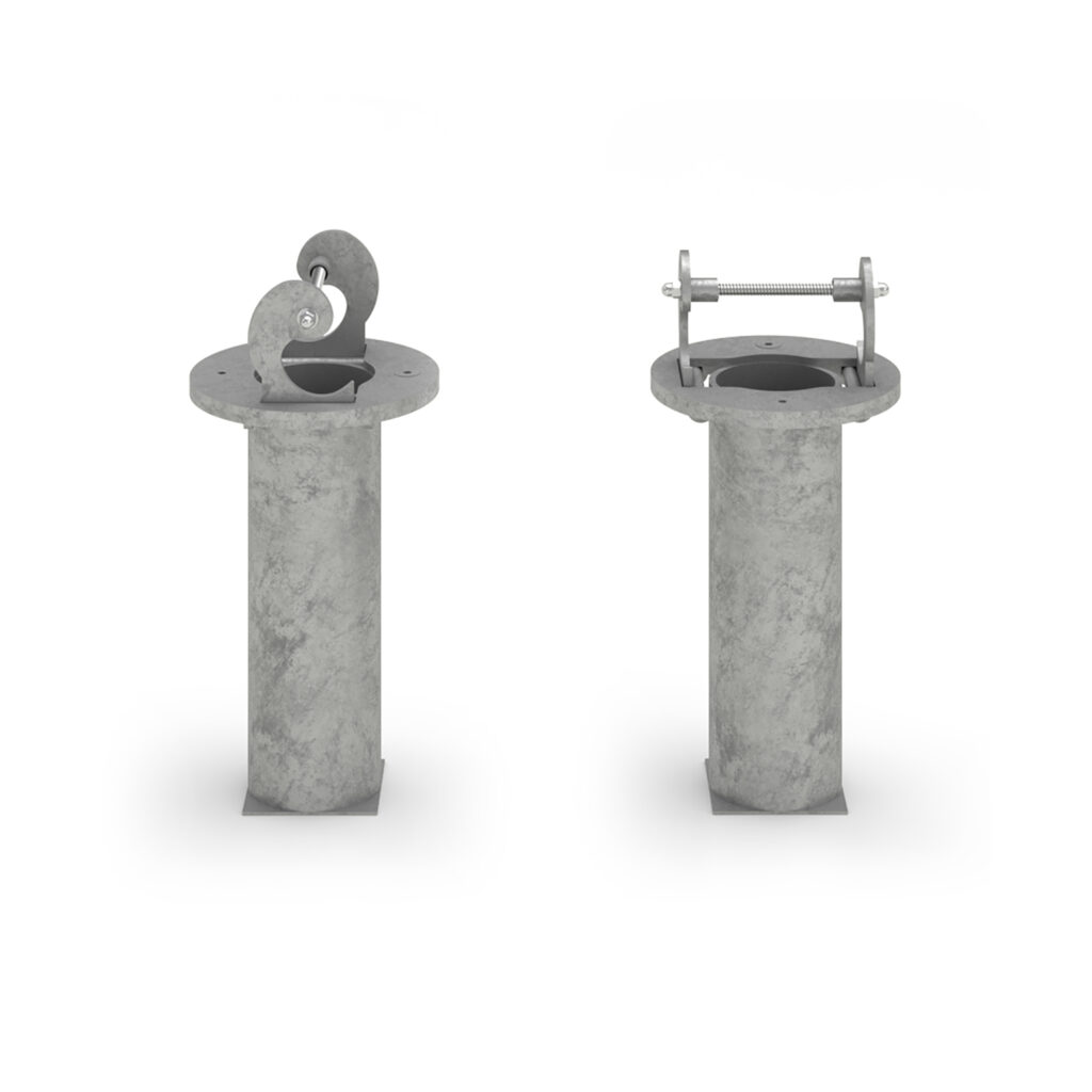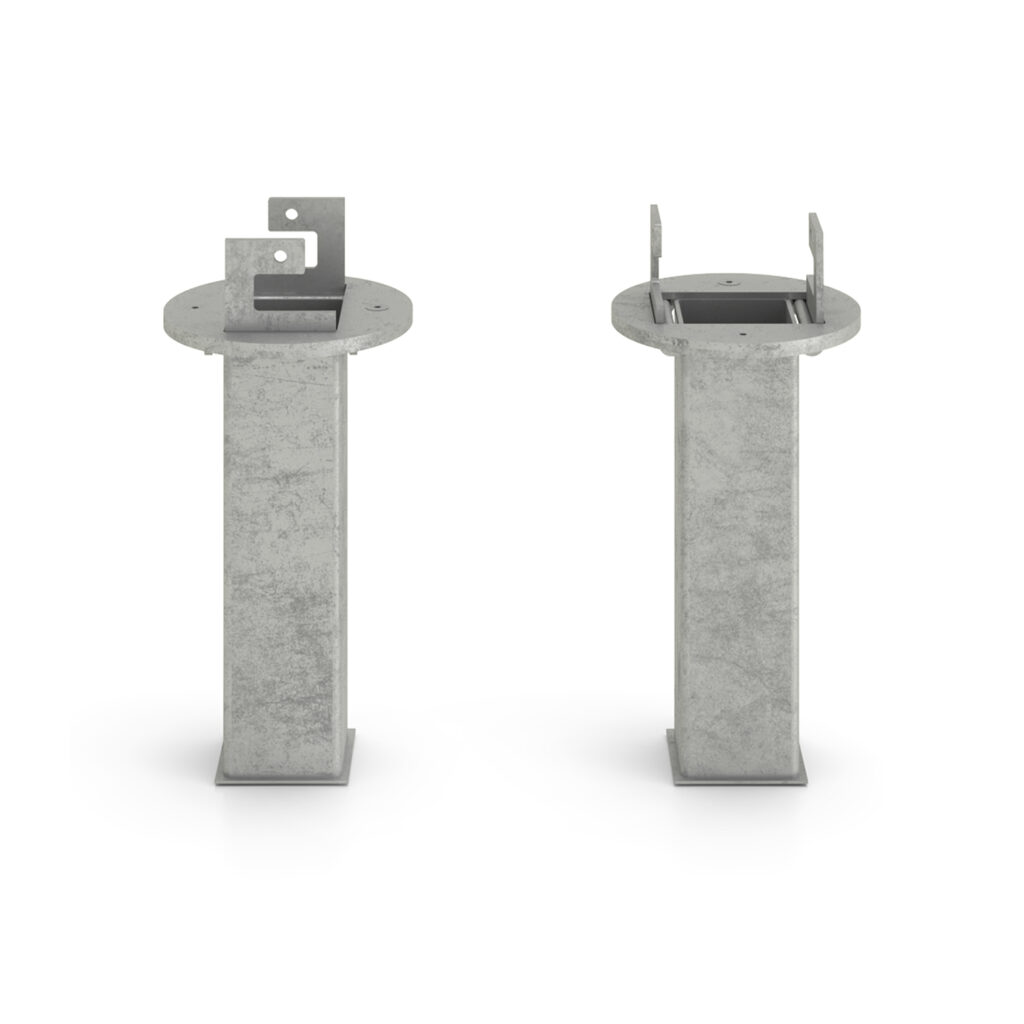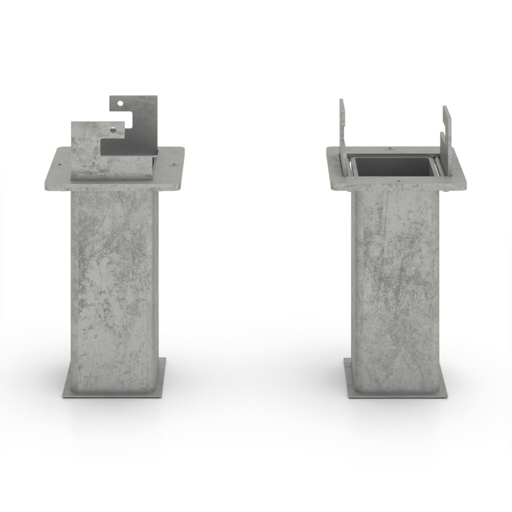 Base de empotrar con tapa doble pivotante y acabado galvanizado.